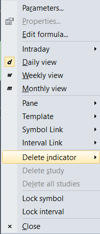 Ngoài cách click đúp chuột, còn có cách kéo thả công cụ vào khu vực cần hiển thị. Để xóa biểu đồ hoặc chỉ báo kỹ thuật trên màn hình PTKT. NĐT kích chuột phải chọn Delete Indicator và xóa các biểu đồ hoặc chỉ báo