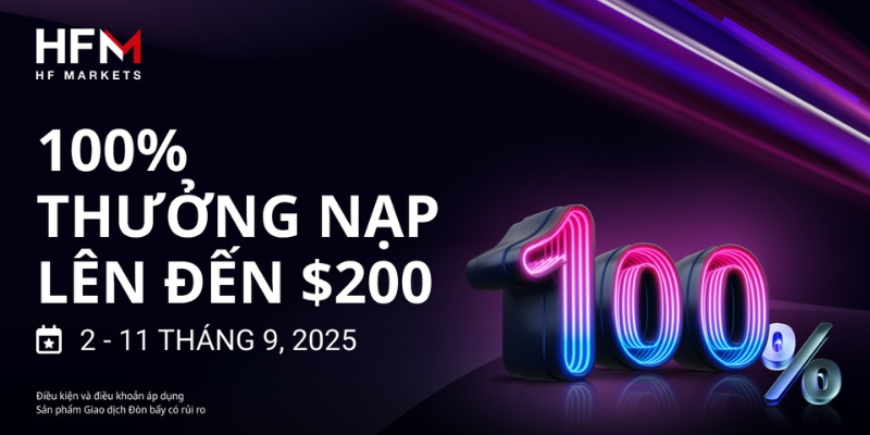 Từ ngày 02/09 đến 11/09/2025, HFM chính thức khởi động chương trình Thưởng Nạp 100% lên đến 200$, mang đến cơ hội tuyệt vời để gia tăng sức mạnh giao dịch cho cả khách hàng mới lẫn khách hàng hiện tại. Đây là thời điểm lý tưởng để bạn nâng cao nguồn vốn, mở rộng cơ hội đầu tư, và tối ưu hóa lợi nhuận.