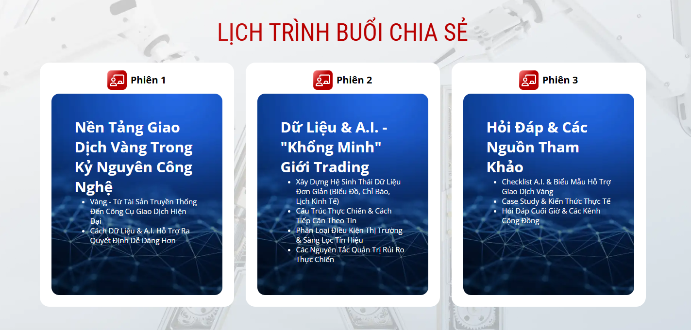 Không lý thuyết sáo rỗng, Buổi chia sẻ lần này tập trung hoàn toàn vào Tư duy thực chiến và Ứng dụng công nghệ. Bạn sẽ được chuyên gia phân tích từ HFM hướng dẫn cách biến dữ liệu khô khan thành chiến thuật giao dịch thực tế qua 3 phiên thảo luận chuyên sâu: