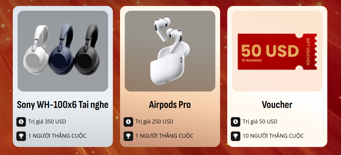 - 10 GIẢI KHUYẾN KHÍCH: Voucher hoàn phí trị giá $50/giải.