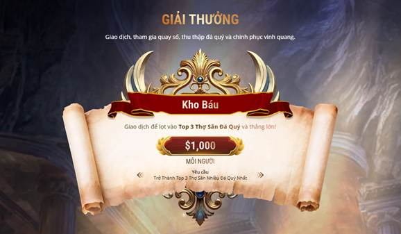 Hãy tích lũy Đá Quý càng nhiều càng tốt. Khi chiến dịch kết thúc vào ngày 13/03, 3 nhà giao dịch sở hữu bộ sưu tập Đá Quý đồ sộ nhất sẽ sở hữu Kho báu $1000, được cộng thẳng vào tài khoản.