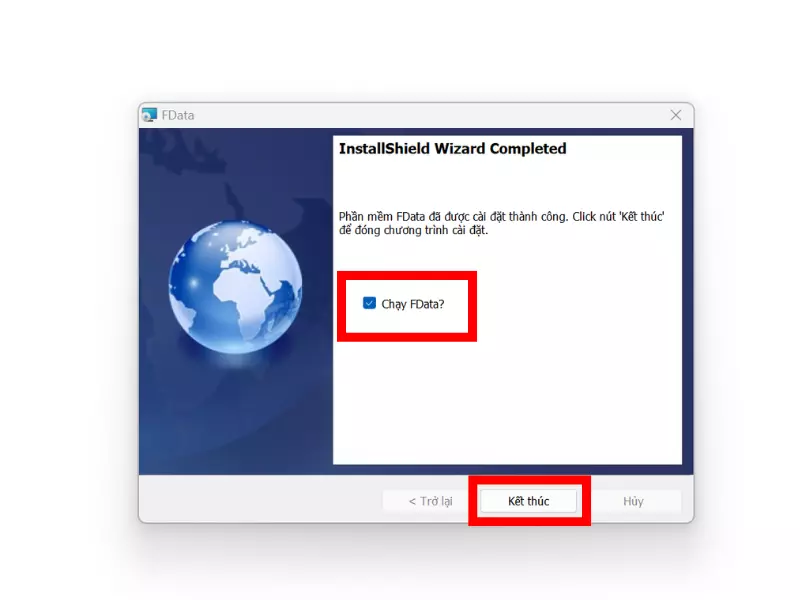 Bước 4: Fdata hiển thị ra bảng thông báo kết thúc, Nhà đầu tư cần tick vào “Chạy Fdata?” rồi sau đó bấm “Kết thúc“.