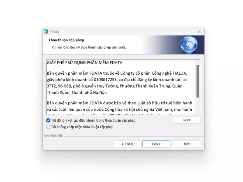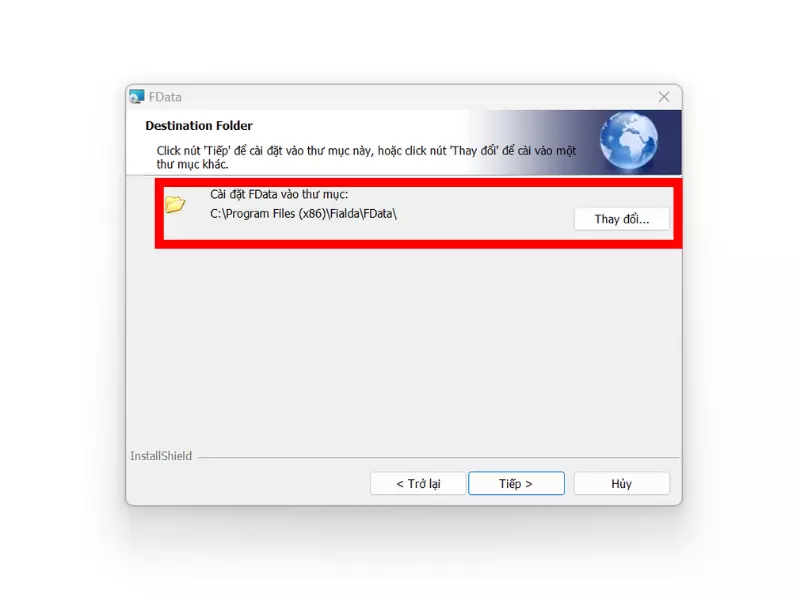 Bước 1: Click vào file Fdata.exe để tiền hành cài đặt, sau khi phần mềm chạy lên click vào “Tiếp“.