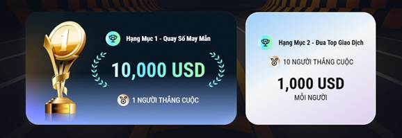 - 10 GIẢI XUẤT SẮC trị giá $1,000/giải (Tương đương ~26.000.000 VNĐ): Dành riêng cho Top 10 Đối tác có tổng khối lượng giao dịch cao nhất trong suốt thời gian diễn ra chương trình.