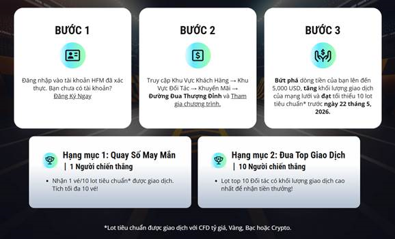 Với thể lệ rõ ràng và giải thưởng hấp dẫn, "Đường Đua Thượng Đỉnh" được kỳ vọng sẽ tạo ra một cú hích mạnh mẽ trên thị trường, đồng thời khẳng định cam kết của HFM trong việc xây dựng một môi trường hợp tác bền vững, minh bạch và luôn đặt lợi ích của đối tác lên hàng đầu.