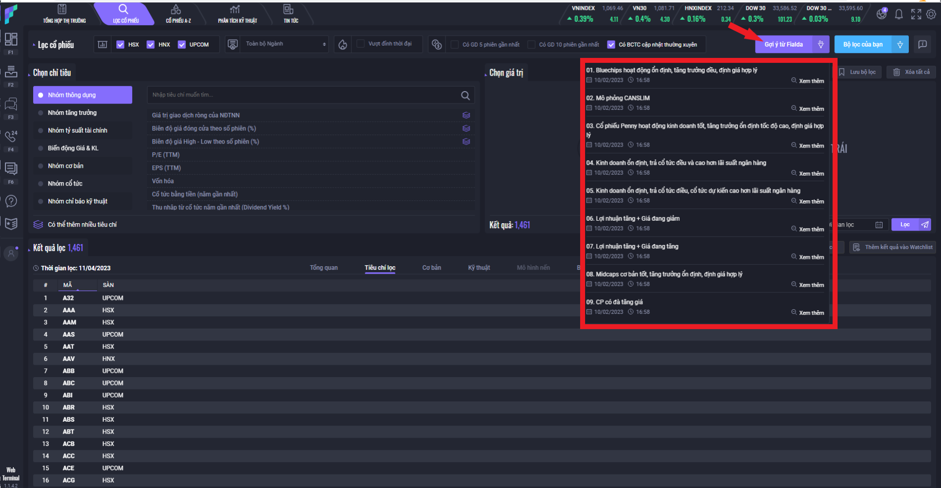 Dưới đây là video hướng dẫn chi tiết cách khai thác tính năng lọc cổ phiếu của Fialda.