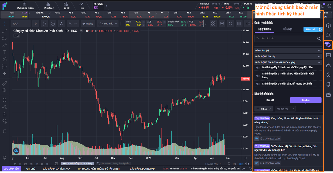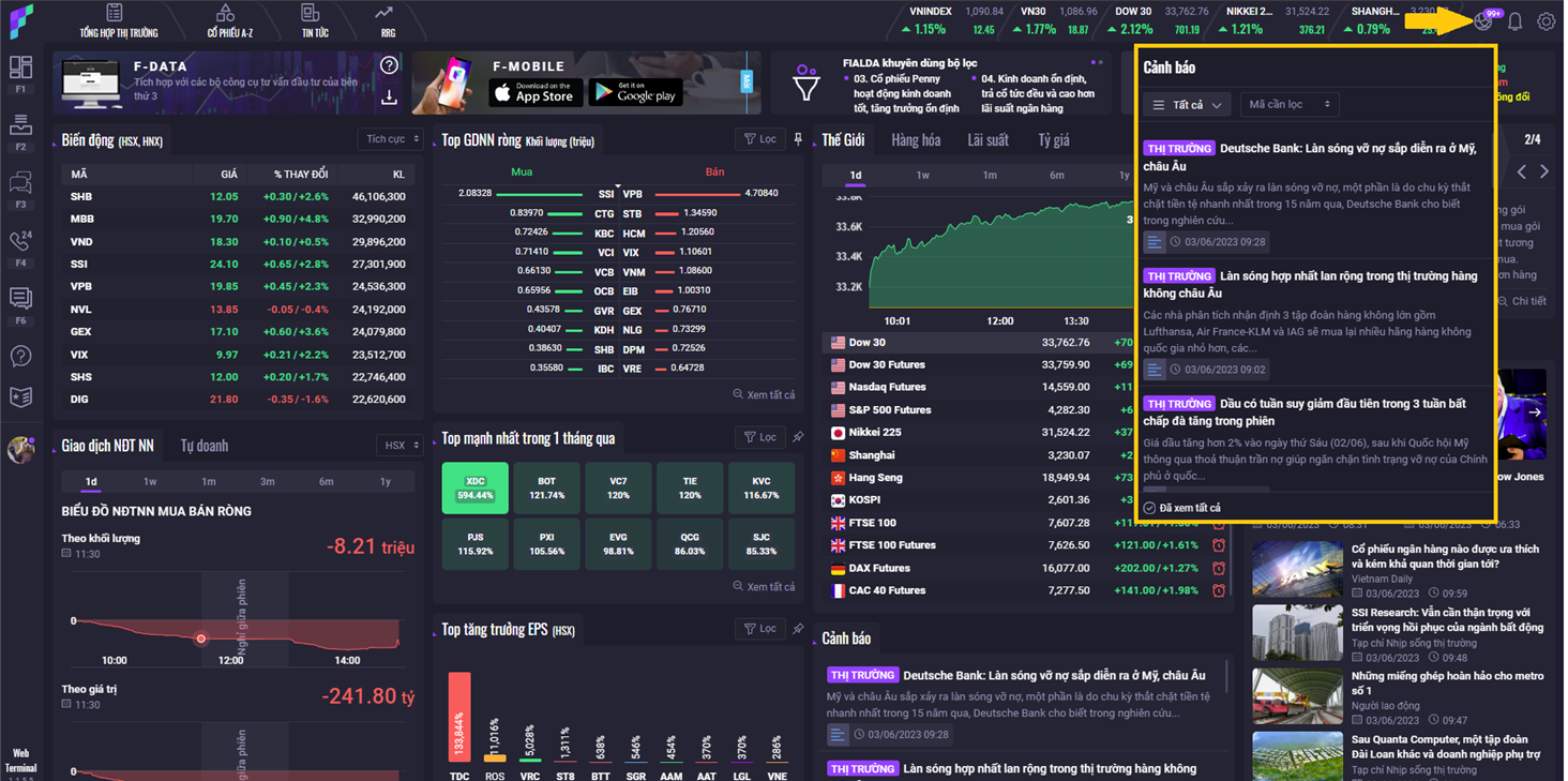 Cảnh báo real-time trên trang web của Fialda cung cấp thông tin tức thời về thị trường chứng khoán và cổ phiếu. Điều này giúp nhà đầu tư và người quan tâm theo dõi và phản ứng nhanh chóng đối với các sự kiện và tin tức quan trọng.