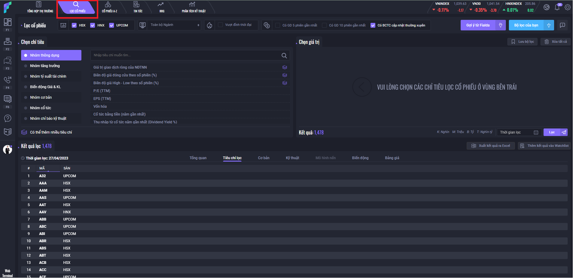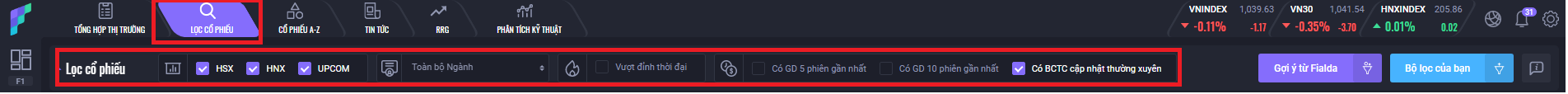 Để sử dụng tính năng Lọc cổ phiếu của Fialda một cách hiệu quả, bạn có thể tham khảo các bước sau đây: