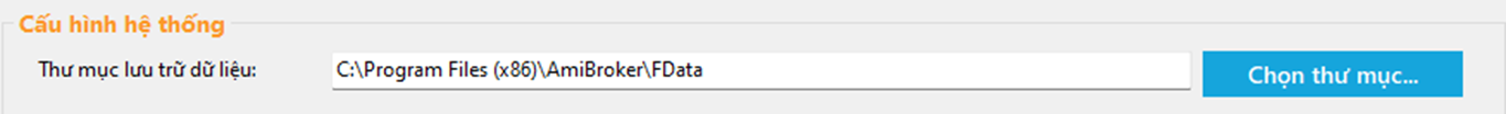 Thư mục (Folder) lưu trữ dữ liệu dành cho FData (độc lập với Amibroker). Vì vậy, người dùng cần tạo Thư mục riêng, và không để chung với Thư mục cài Amibroker.