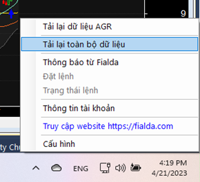 Ngoài ra trong trường hợp NĐT vẫn không xử lý được các vấn đề dữ liệu chúng ta có thể liên hệ với chúng tôi qua đường kênh Chart trên Fialda Web Terminal.