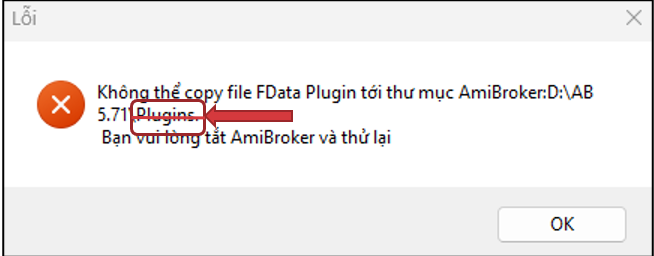 Hiện tượng: Xuất hiện thông báo lỗi khi cài Plugin cho Amibroker.
