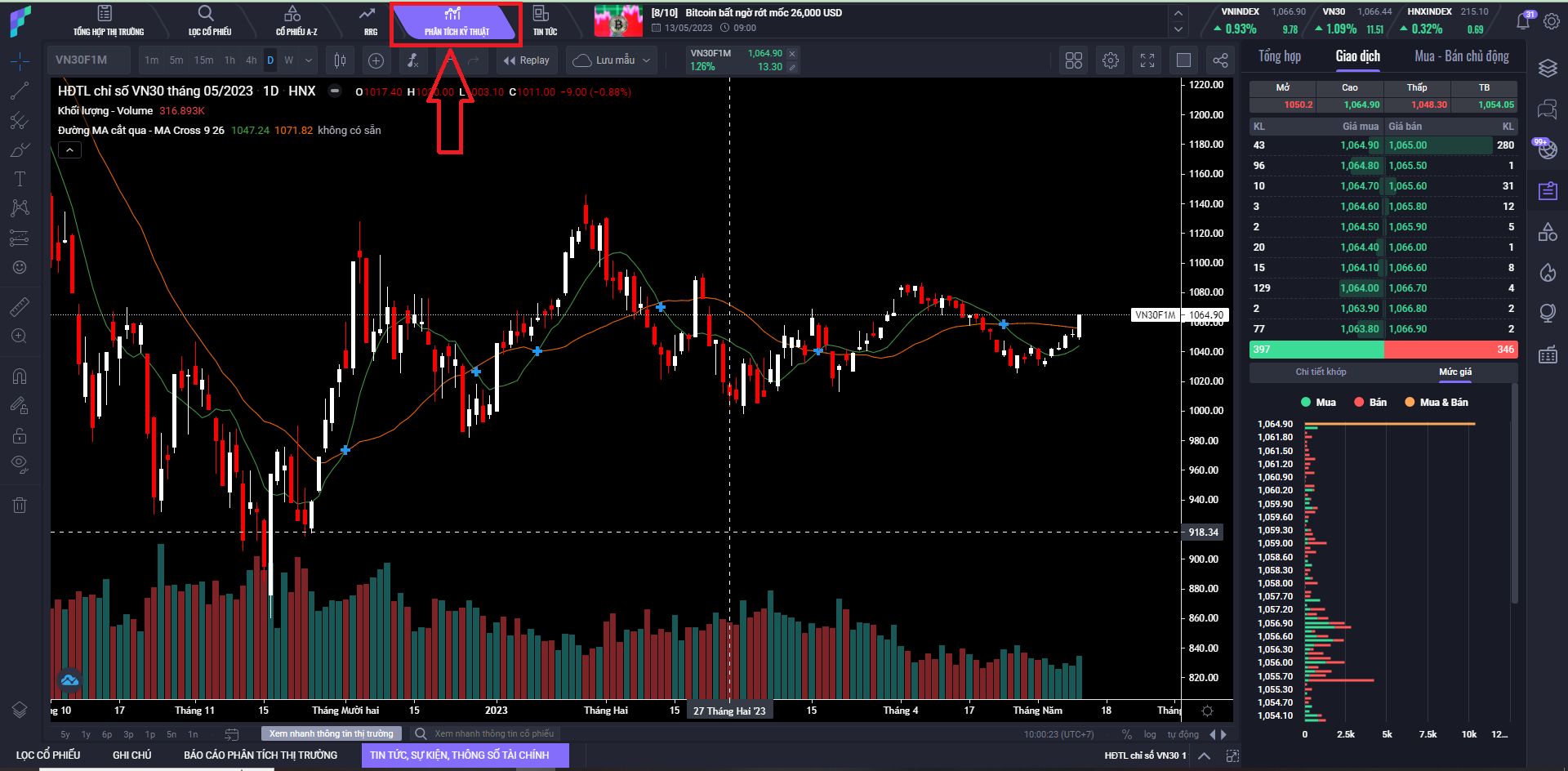 Ngoài ra Trên màn hình PTKT chúng ta có thể gọi pop_up thống kê dữ liệu cổ phiếu