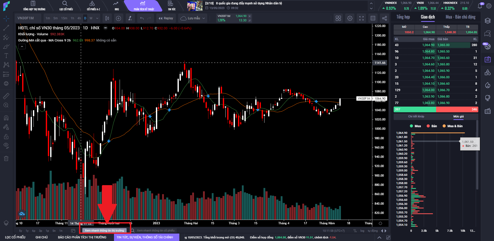 Màn hình Pop up cung cấp các thông tin về thị trường chung theo sàn