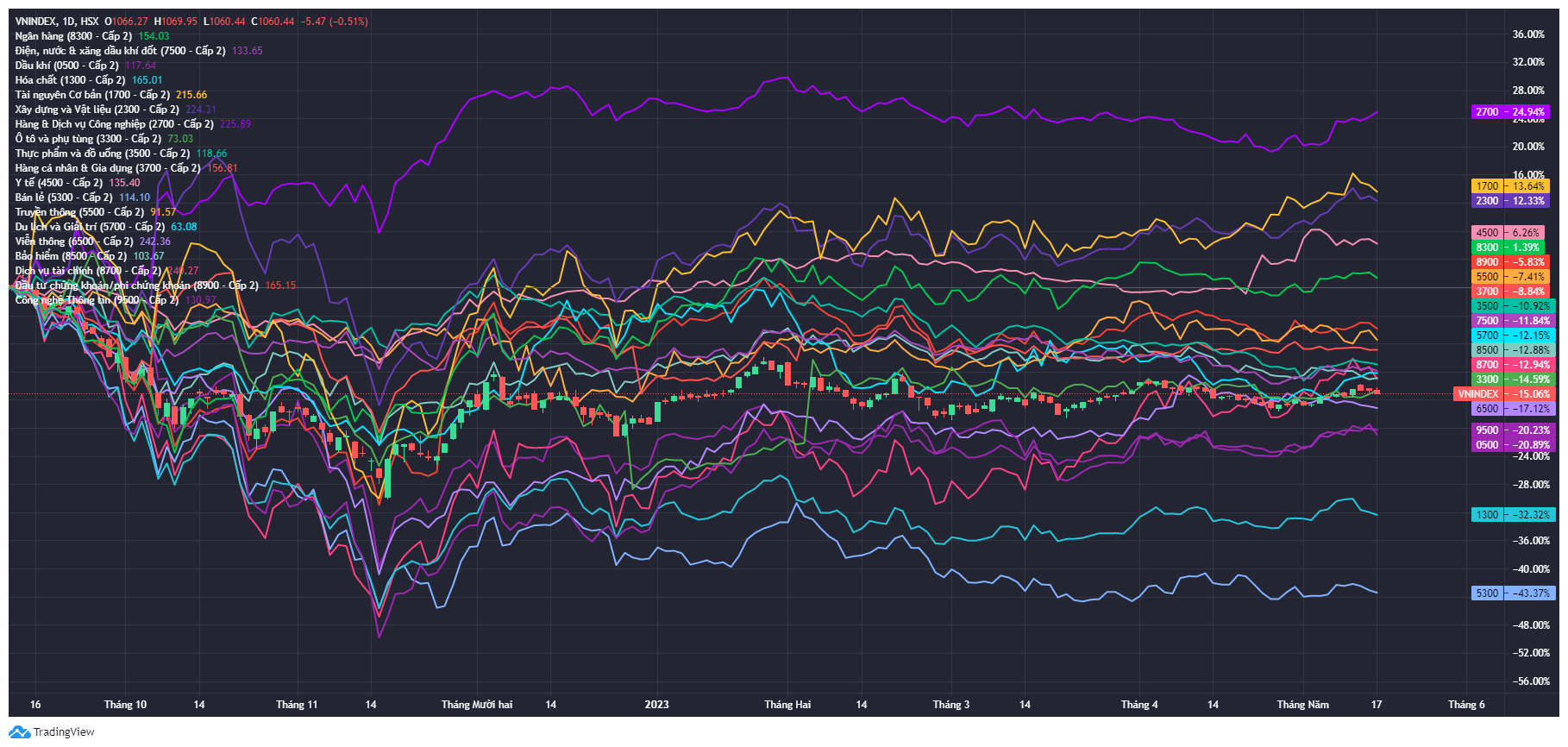 Ngoài ra, Fialda gửi tới cộng đồng NĐT biểu đồ tương quan chỉ số nhóm ngành ICB cấp 1 và ICB cấp 2 với chỉ số VNINDEX nhằm hỗ trợ thuận tiện cho chúng ta tiện trong quá trình phân tích sức mạnh của ngành về với chỉ số chung tại mục thư viện của Fialda