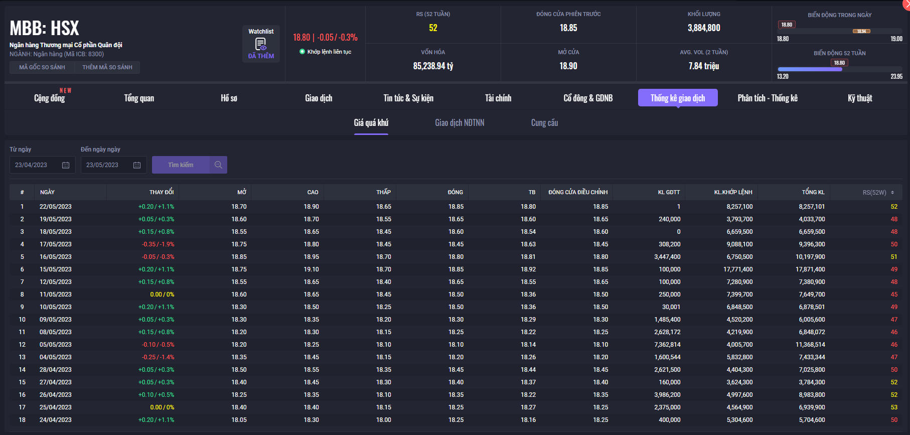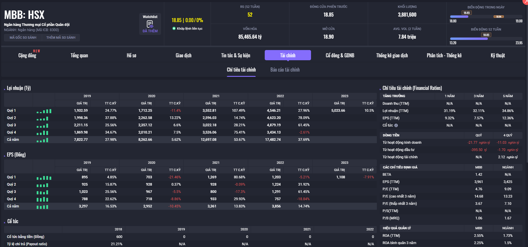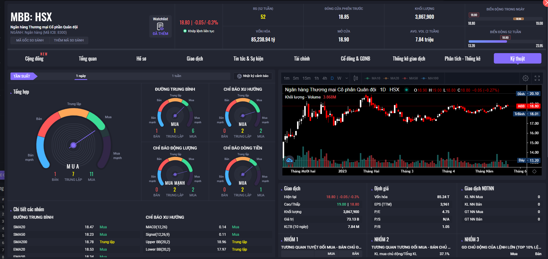 Thông tin cơ bản: Tính năng Xem nhanh Chi tiết Cổ phiếu cung cấp thông tin cơ bản về cổ phiếu như giá hiện tại, biến động giá, giá trị vốn hóa, P/E, EPS, tỷ lệ cổ tức và các chỉ số tài chính quan trọng khác.