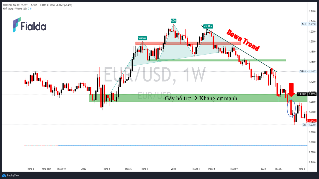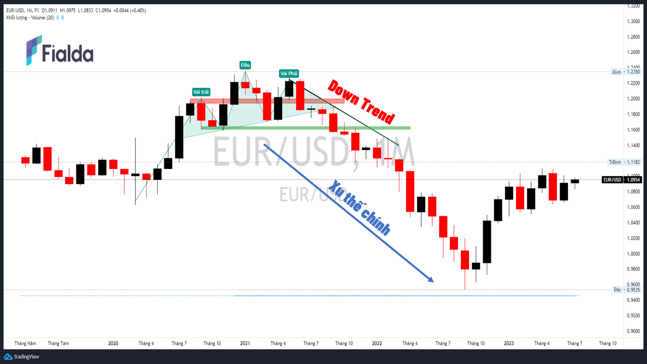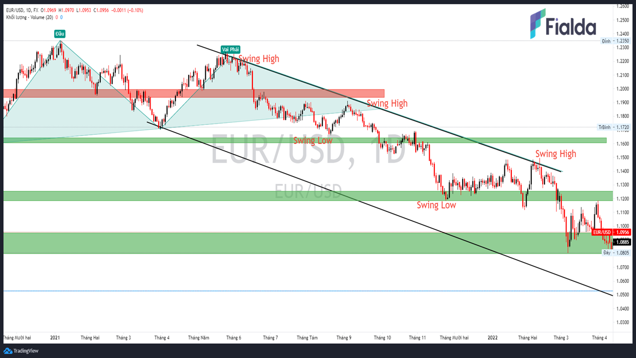Biểu đồ tỷ giá EUR/USD khung thời gian D1 để xác định xu hướng.