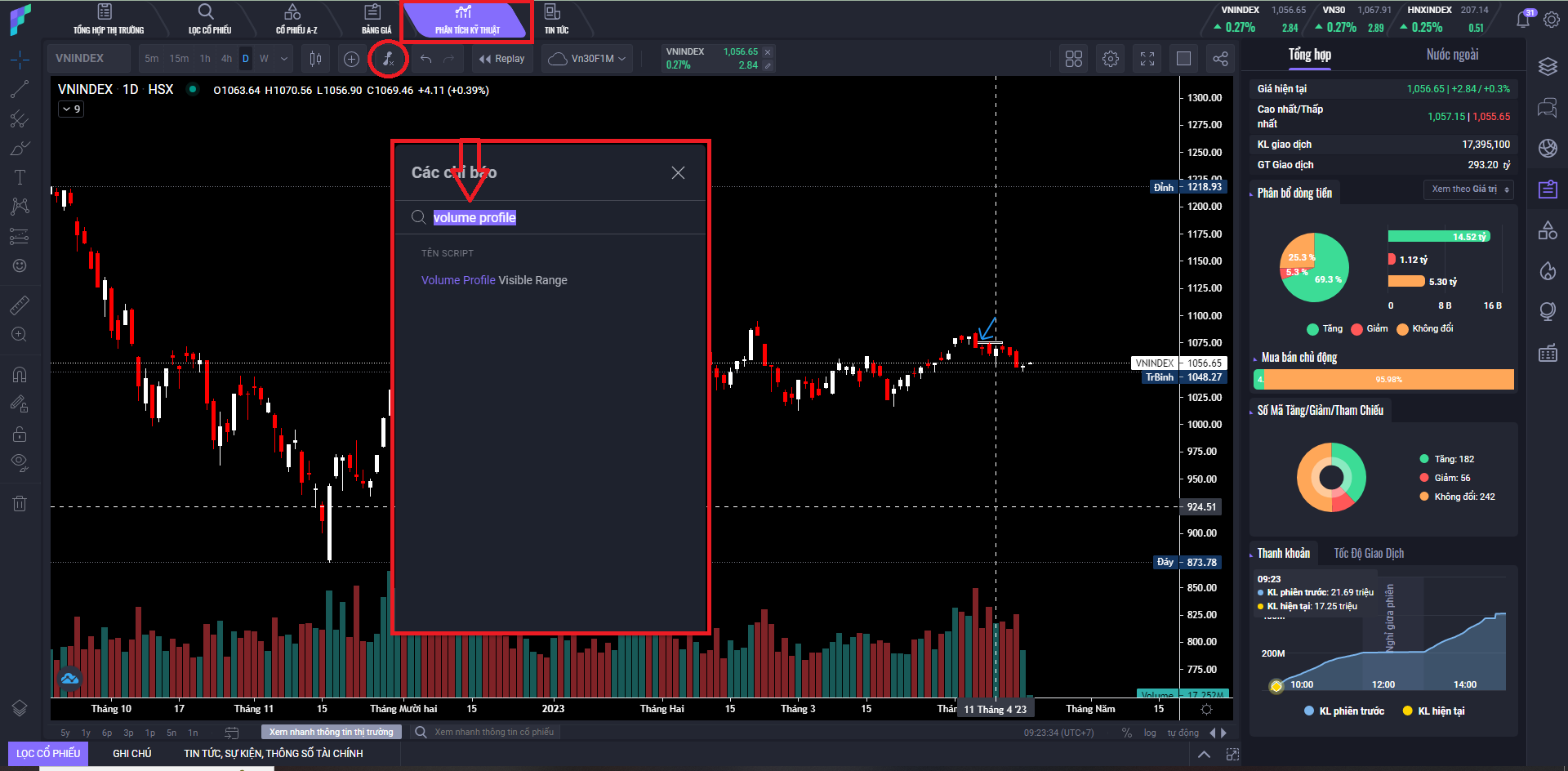 Các bước để mở công cụ Volume Profile (Nguồn: Fialda)