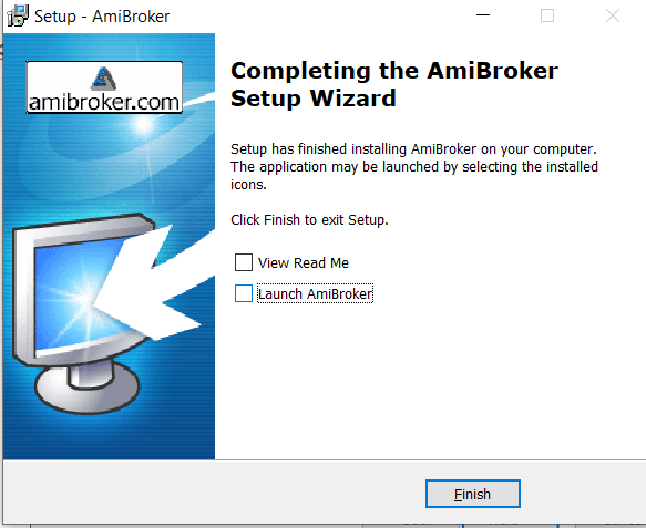 Bỏ tích chọn “Launch Amibroker” sau đó ấn “Finish” để thực hiện Crack