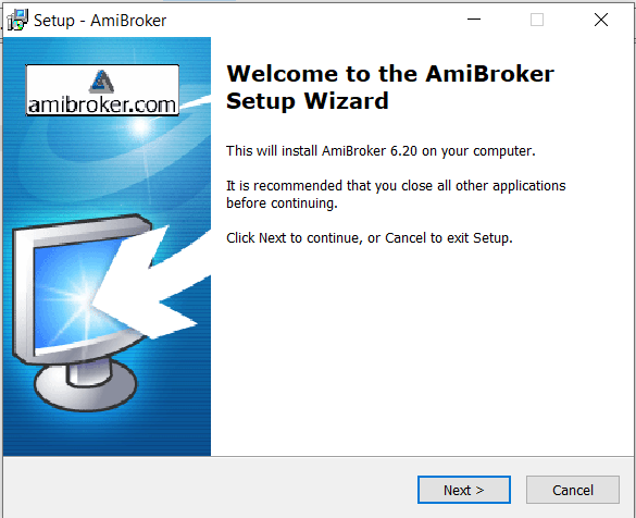 Bước 3: Chạy file cài đặt AmiBroker 6.20.1.exe lên, rồi thực hiện cài đặt.