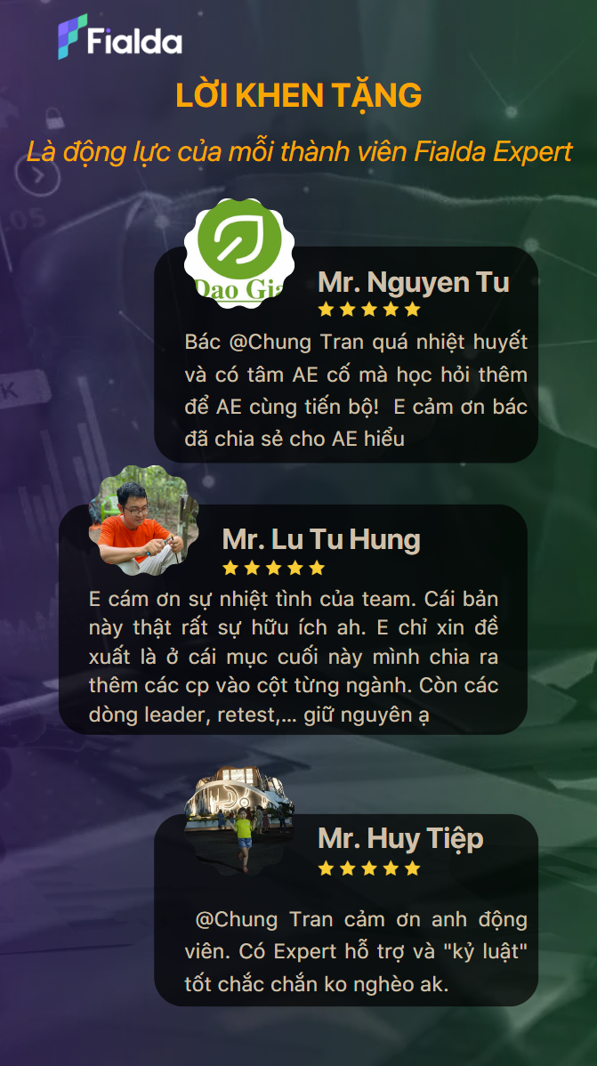 Một số lời khen ngợi của các nhà đầu tư đã và đang thành công nhờ chương trình và chuyên gia đến từ Fialda Expert: