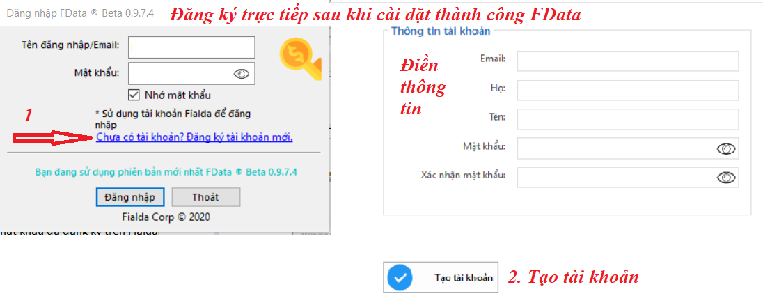 Có 2 cách để tạo tài khoản và đăng ký sử dụng Fdata: