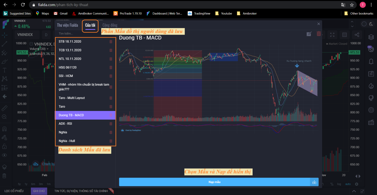 Thông thường, các thao tác thiết lập và vẽ các chỉ báo trên đồ thị sẽ được lưu lại theo trình duyệt web mà người dùng sử dụng.